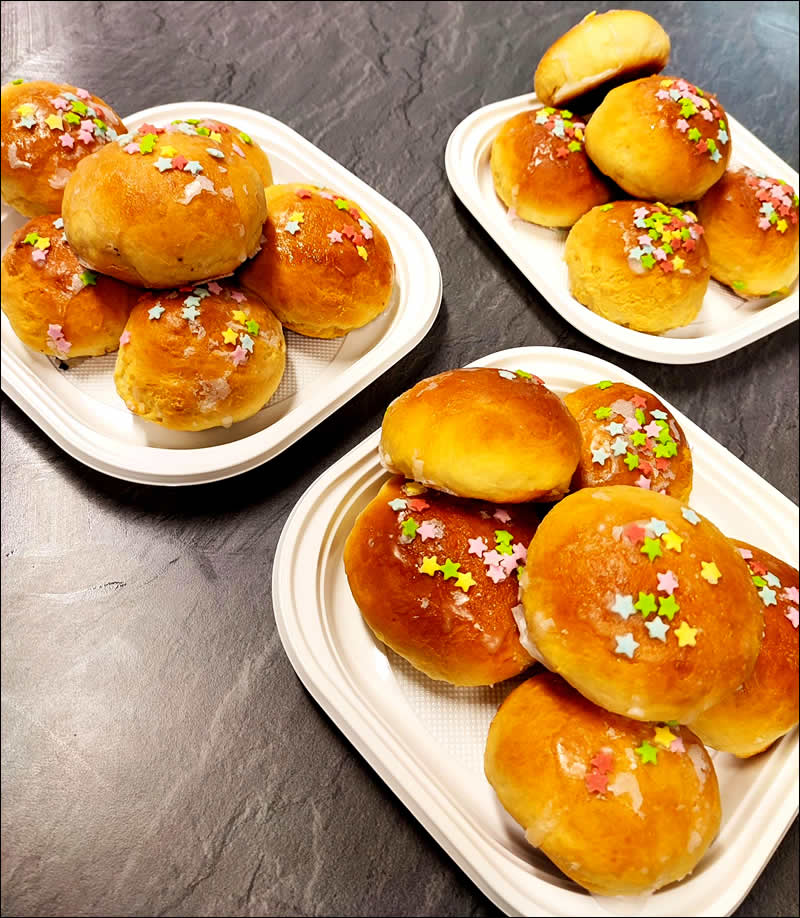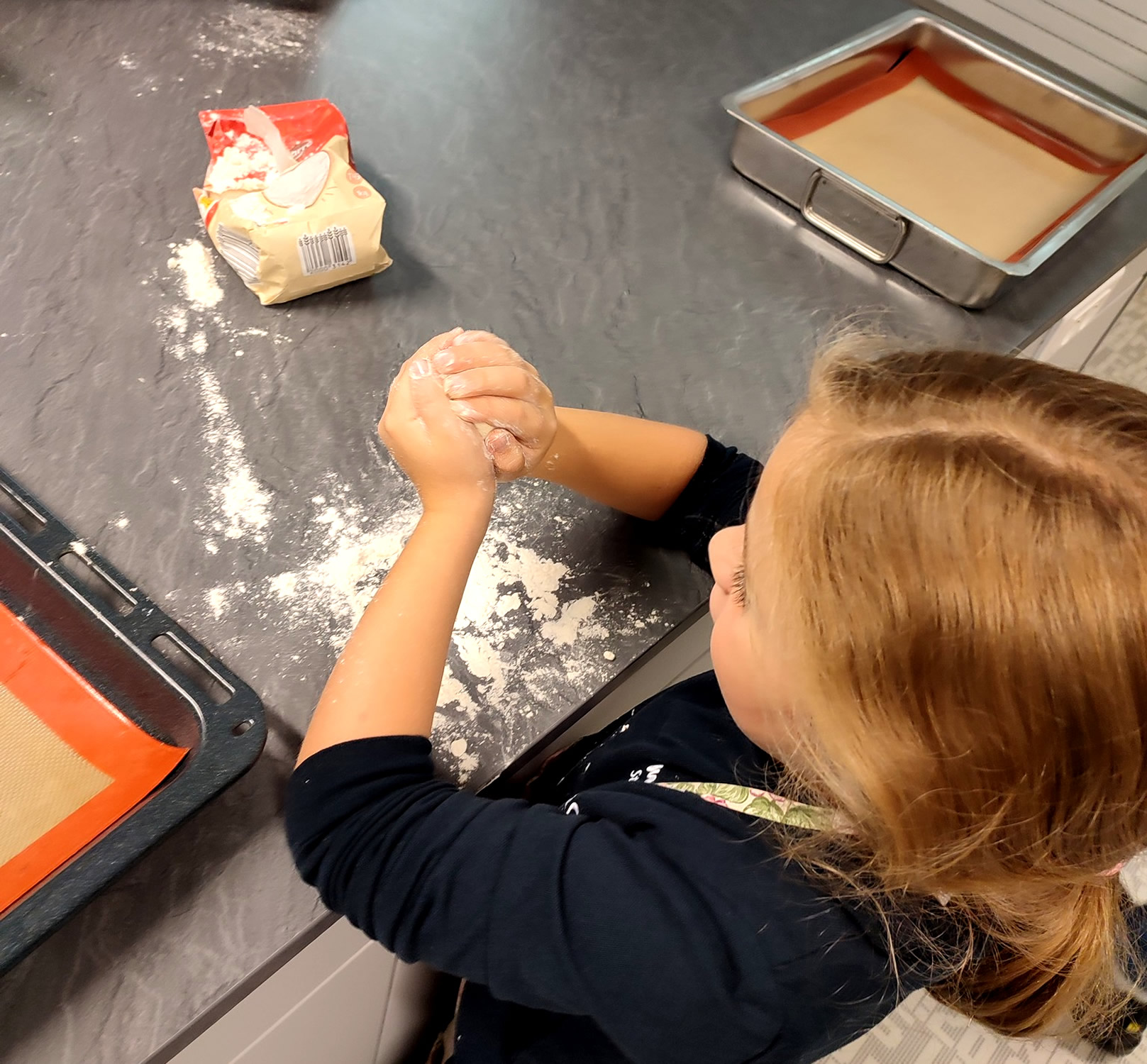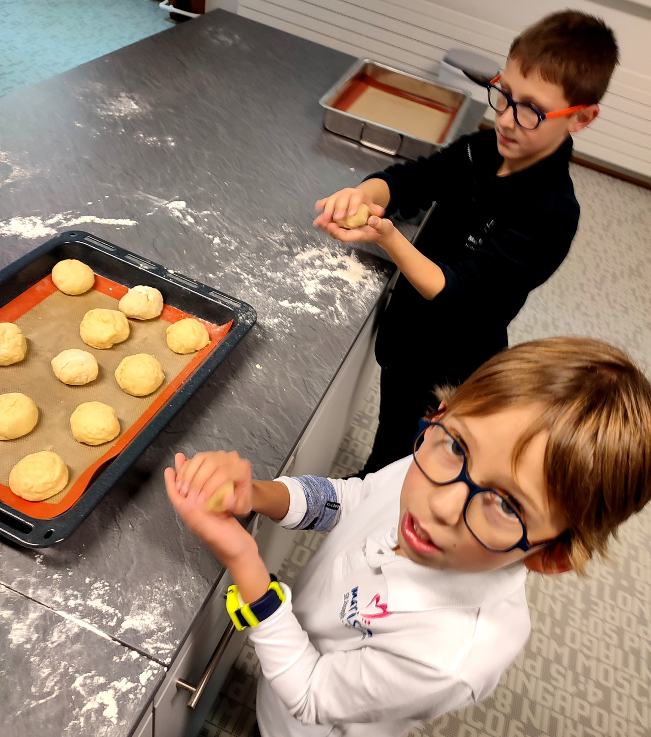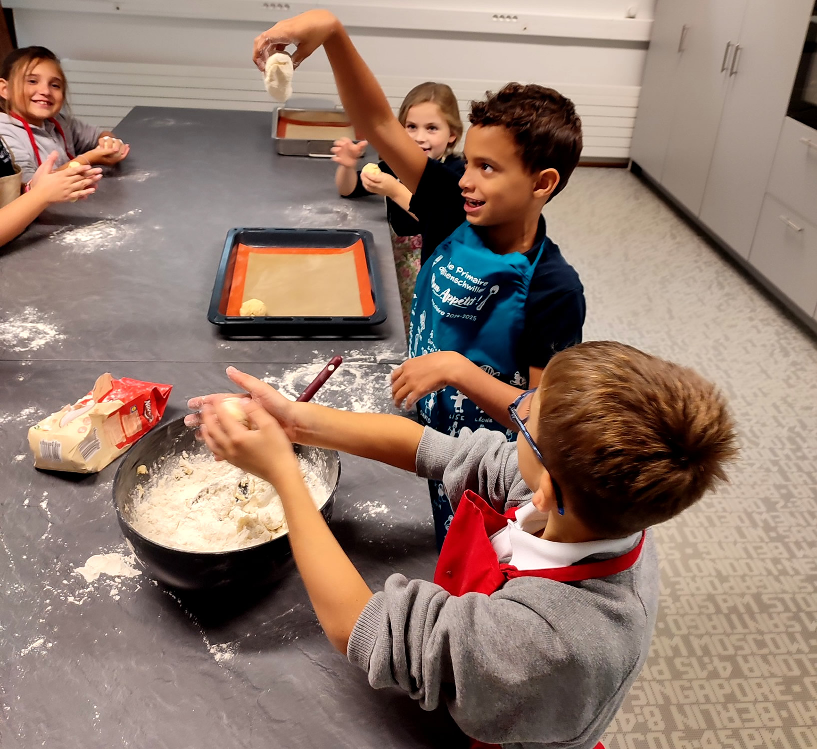 Préparation en cours de petites brioches maison du côté des CE2-CM1…