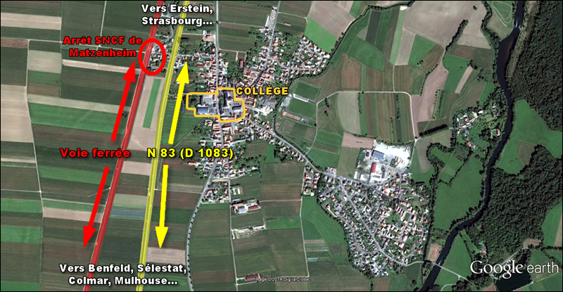 Par la route Nationale 83 (D 1083), qui relie Strasbourg et Sélestat – Sortie Matzenheim.