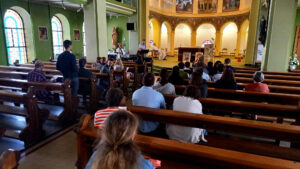 Messe de la Saint-Marcellin célébrée par le père Éric KRUPA. Un joli moment d’unité qui s’est clôturé dans la cour autour de la statue de la Vierge avec prière et chant d’envoi.
