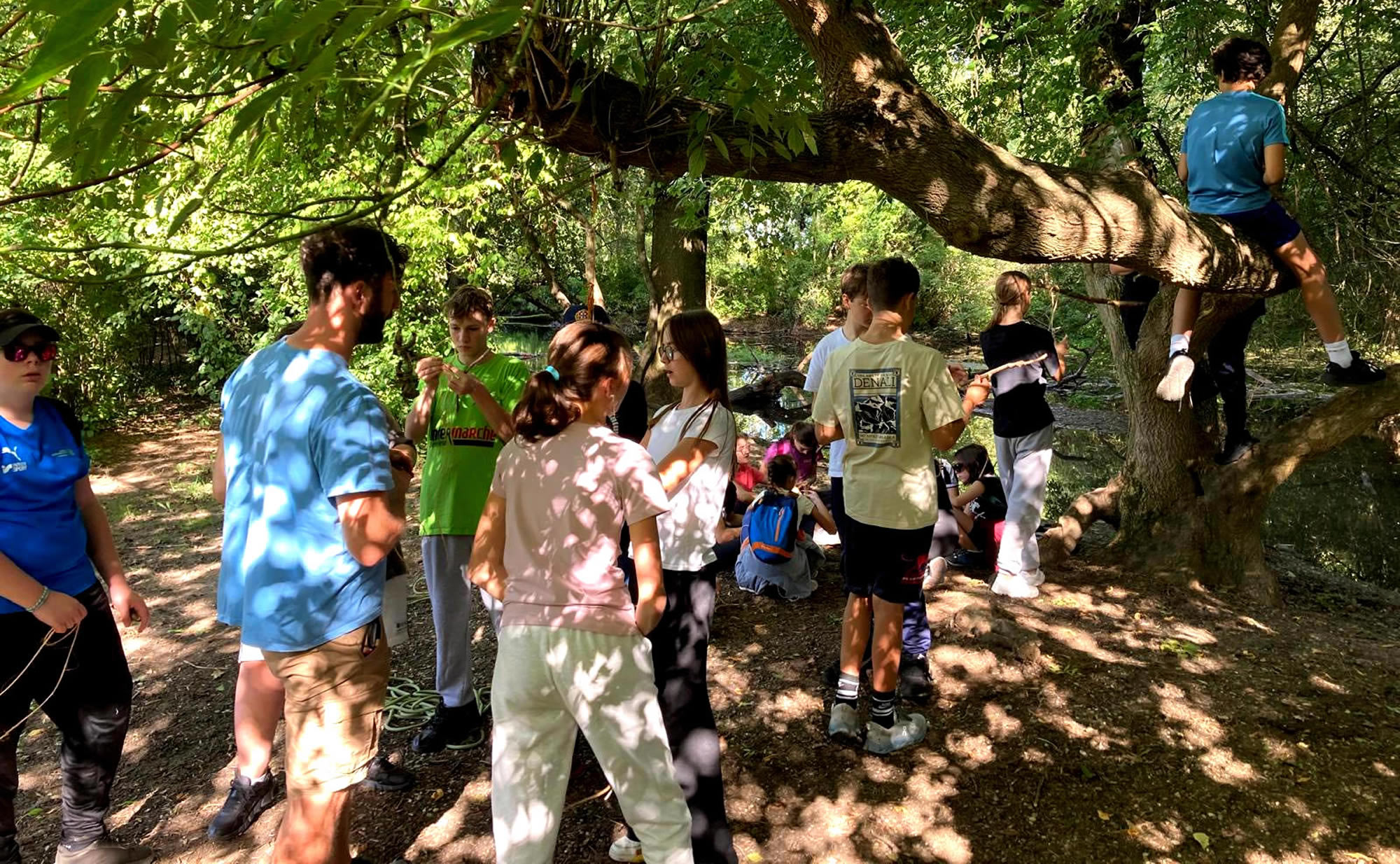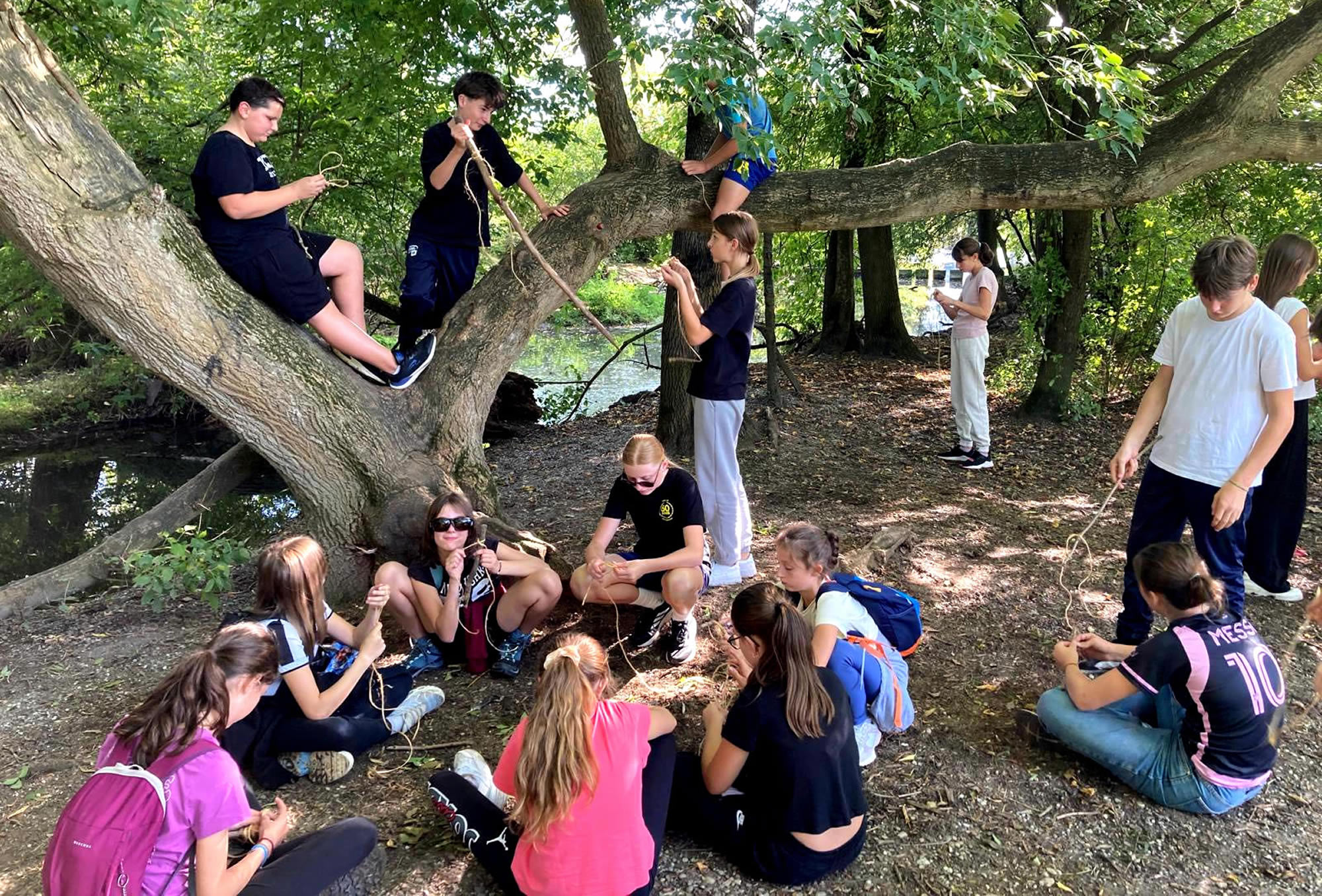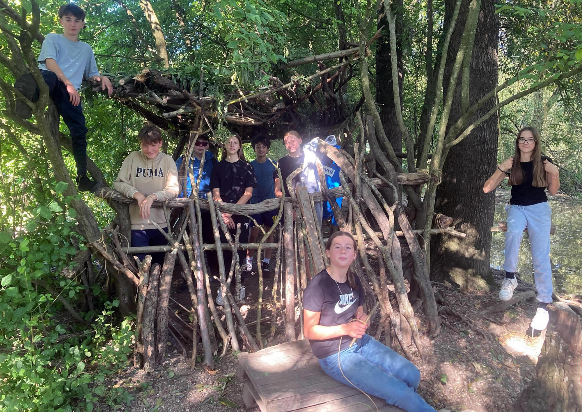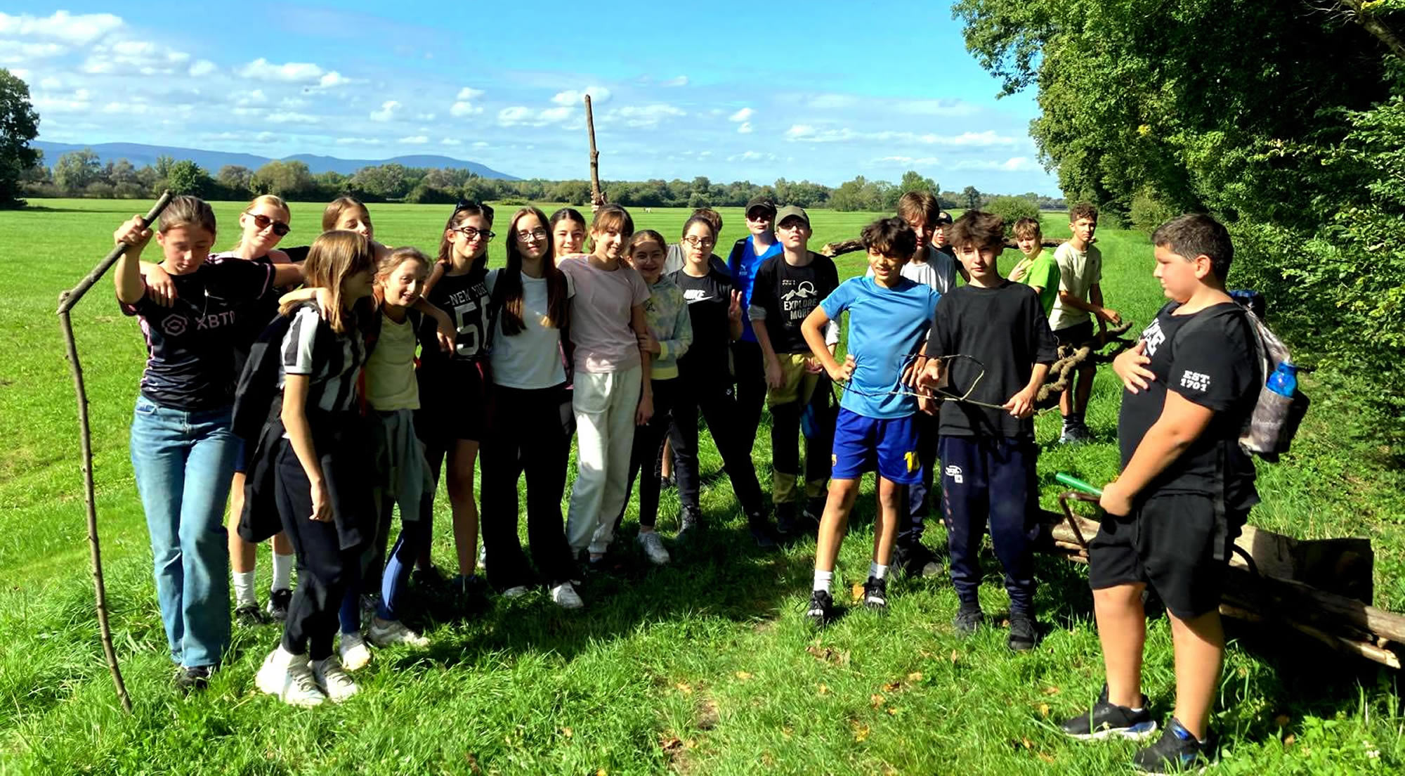 Séjour à Muttersholtz – Ramassage de bois et apprentissage des nœuds pour les bases d’une cabane solide… hâte de voir le résultat !