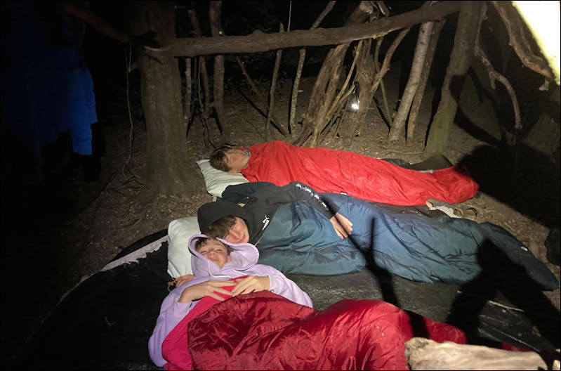 Des nouvelles du jour de nos apprentis Robinson – Résultat des cabanes dans lesquelles ils vont passer la nuit.